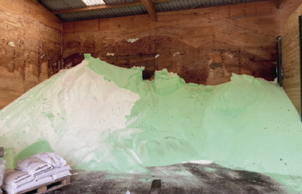 Auch die Lagerung von Ware unterschiedlicher Herkunft in einer Box kann Ursache für Streufehler sein. Das gilt nicht nur bei Harnstoff, sondern auch für alle anderen Produkte wie z. B. Kalkammonsalpeter oder SSA. Gerade bei Importware kann der mittlere Korndurchmesser oft sehr stark variieren. Werden dann deutlich voneinander abweichende Düngerqualitäten auf ein Haufwerk gekippt, ist eine exakte Querverteilung mit einem Scheibenstreuer nicht mehr möglich. Eine ungenügende Querverteilung ist die Folge. Es kommt zur sogenannten »technischen Streifenkrankheit«, welche zu deutlichen Ertragsausfällen und damit finanziellen Verlusten führt. Grund: Eine Streuabweichung ist erst ab ca. 30 % überhaupt für das menschliche Auge sichtbar.